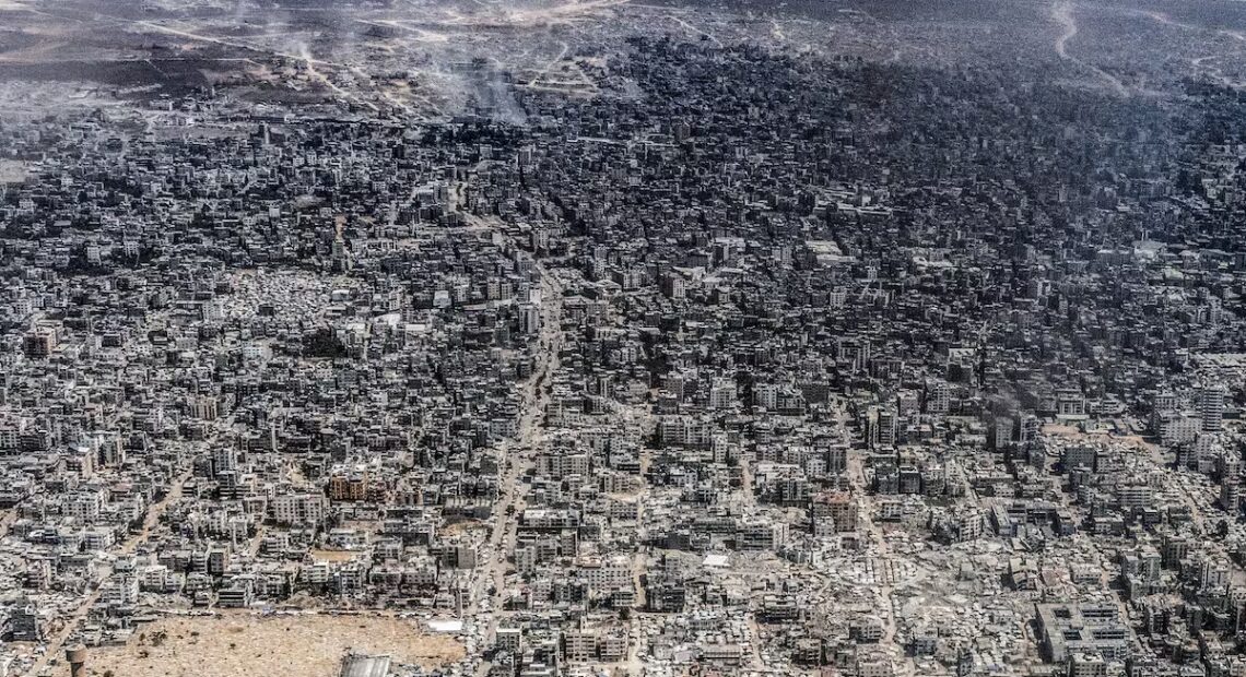 Ciudad Gaza. La imagen aérea fue captada esta semana por una periodista abordo de un avión libanés.