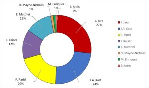 Por su parte, el candidato del Partido Republicano José Antonio Kast (23,9%) obtuvo el segundo con una votación próxima a la proyectada por las encuestas (20%-23%), beneficiado por un contexto que favorece las propuestas de orden, control territorial, fortalecimiento de la persecución penal y agendas duras en migración. Su consolidación se explica no solo por su arrastre personal y una campaña bien diseñada, sino también por el declive de la derecha tradicional representada por la candidatura de Evelyn Matthei, quién llegó en quinto lugar en el conteo general con 12,5% de la votación. También explica que Kast estuviera en el margen de lo estimado por los sondeos, que la tercera candidatura del sector, Johannes Kaiser, con una votación de 13,9% no consiguiera amenazar la posición del Republicano.